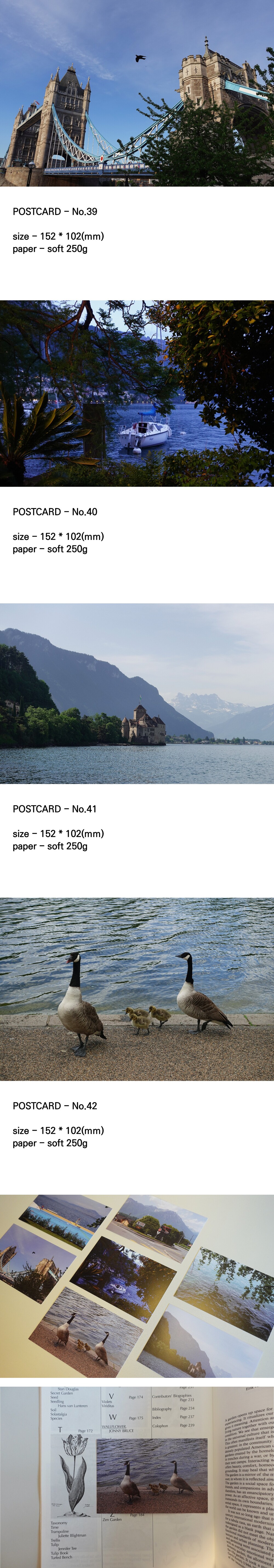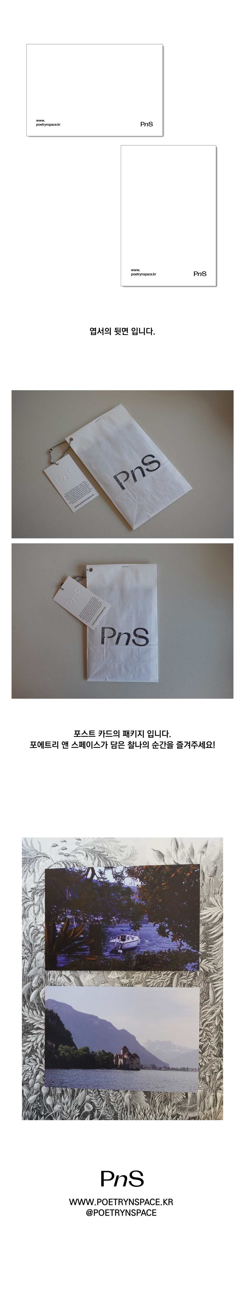 포에트리 앤 스페이스 디렉터가 여행 중 담은 찰나의 순간들을 엽서로 제작했습니다.