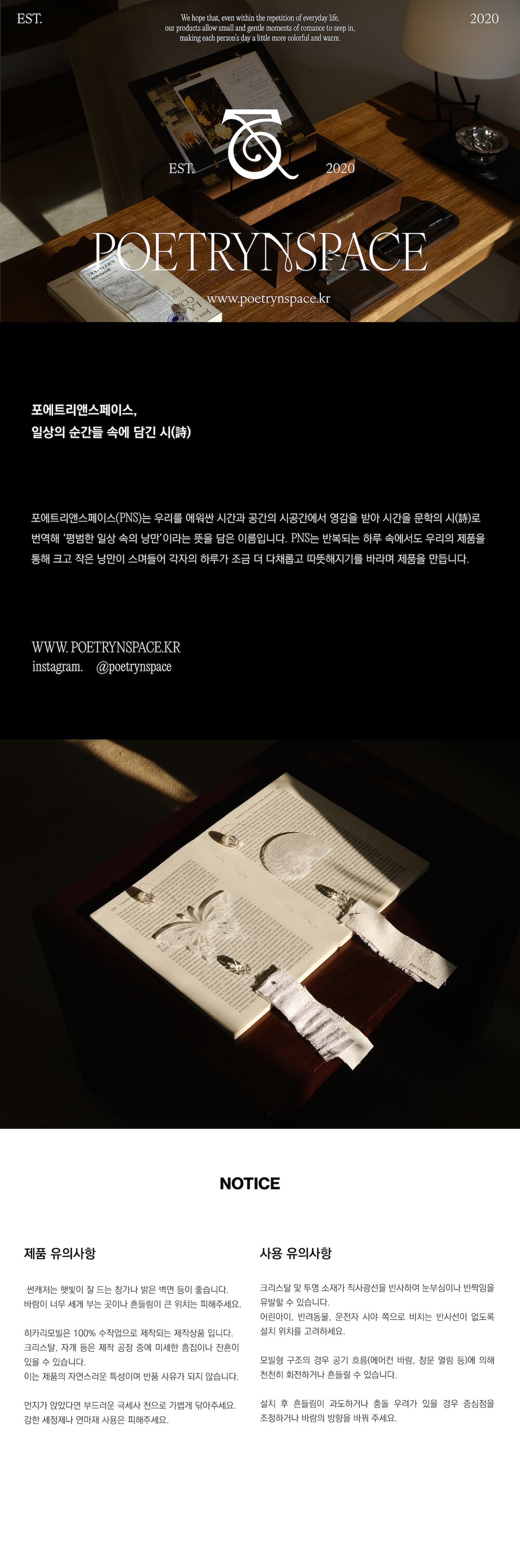 햇빛의 각도에 따라 계속 달라지는 빛의 리듬은 ‘찰나의 순간’의 아름다움을 담고 있으며 자연의 빛을 그대로 받아내기 때문에 자연의 일부를 공간으로 불러오는 오브제가 됩니다.