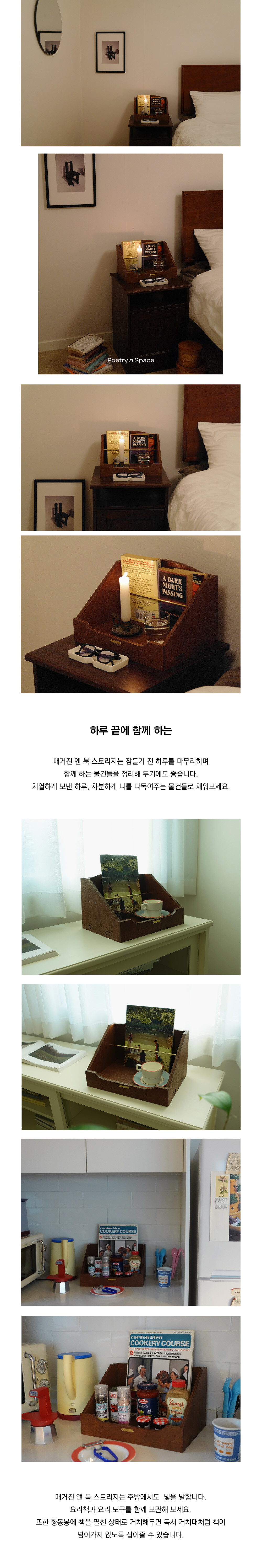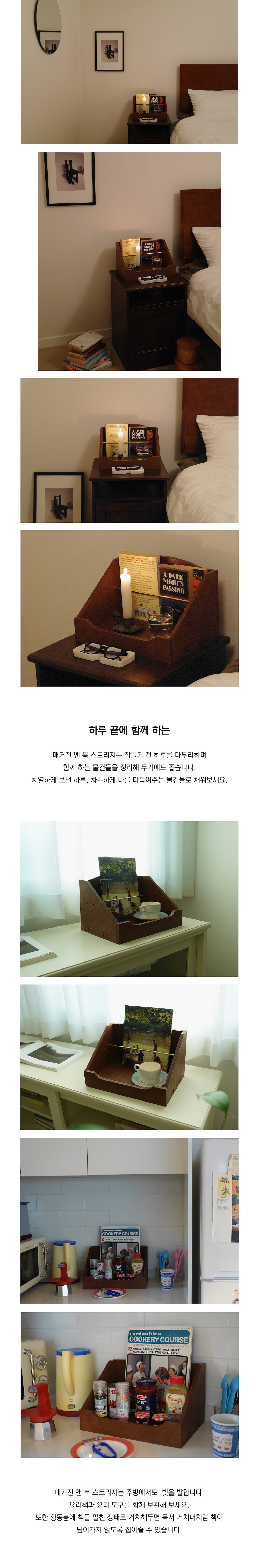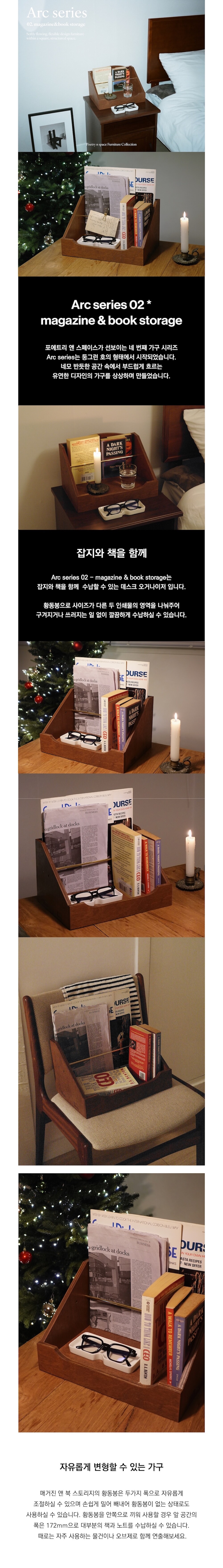 Arc series 02 - magazine & book storage는 잡지와 책을 함께 수납할 수 있는 데스크 오거나이저 입니다. 황동봉으로 사이즈가 다른 두 인쇄물의 영역을 나눠주어 구겨지거나 쓰러지는 일 없이 깔끔하게 수납하실 수 있습니다. 황동봉은 두 가지 폭으로 자유롭게 조절하실 수 있으며, 손쉽게 밀어 빼내어 황동봉이 없는 상태로도 사용하실 수 있습니다.
