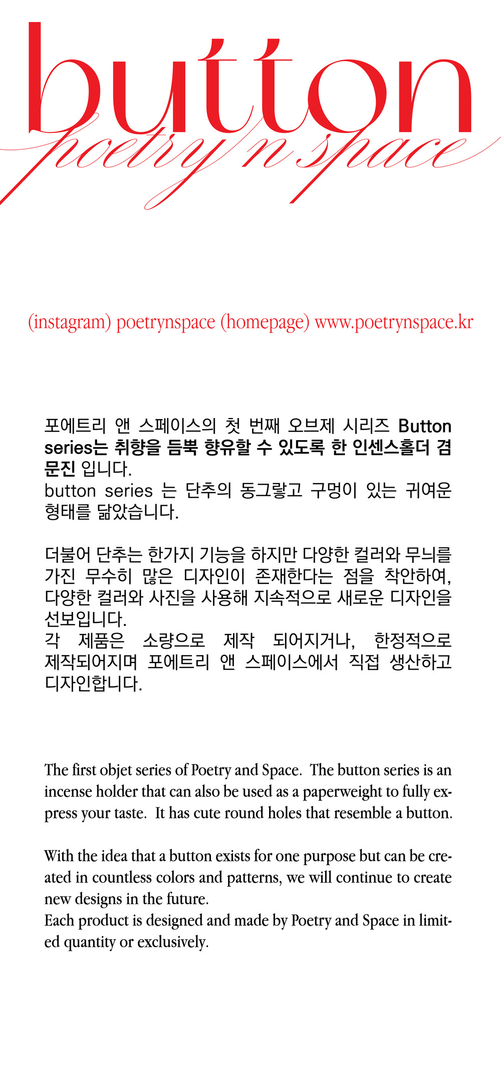 Button 오브제는 인센스 홀더 겸 문진, 작은 악세사리를 보관하는 트레이로 사용하실 수 있습니다.