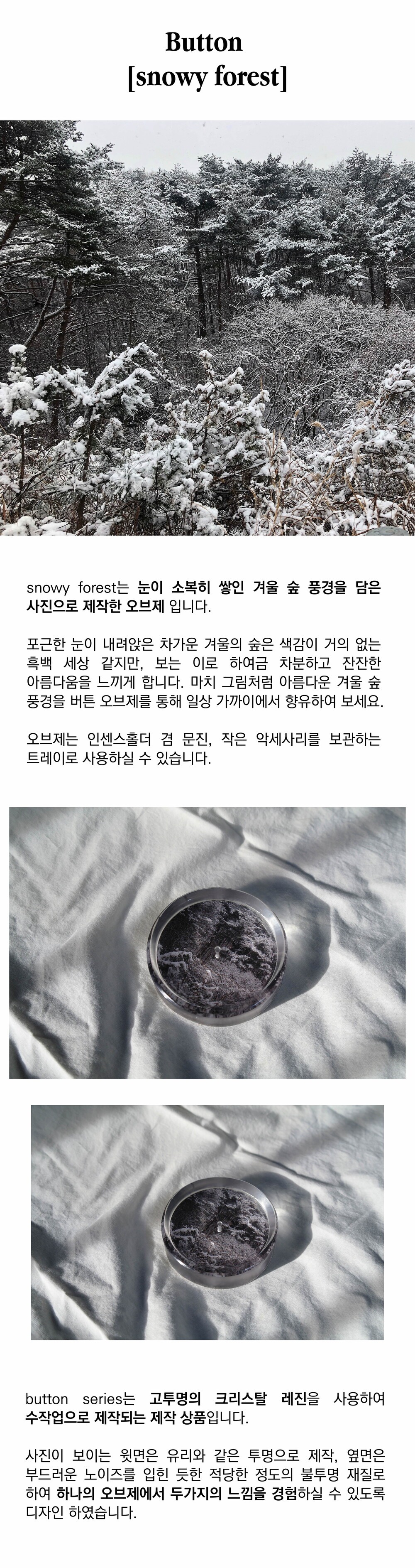snowy forest는 눈이 소복히 쌓인 겨울 숲 풍경을 담은 사진으로 제작한 오브제 입니다.